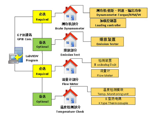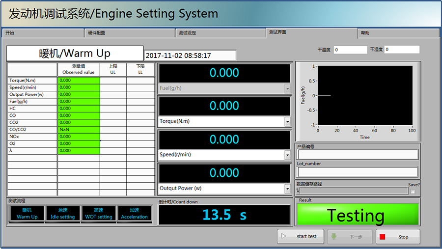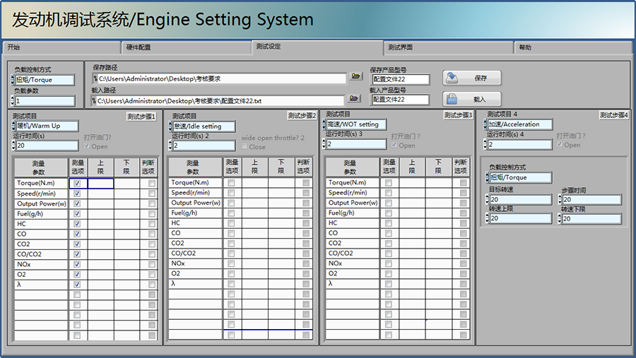 CMT-1040GHS该系统是基于测功机、加载控制器,流量计,排放分析仪, 等外围测试设备通过LabVIEW 软件控制实现发动机的在线调试,测试采用电启动,无需手动启动,且整个测试在噪音控制箱内进行,噪音可以控制在75分贝以下, 用于各类非道路用发动机功率,油耗及排放试验、直接采样试验的数据采集及数据处理。具有功能全面、可靠性好、操作方便、拓展性强等特点。