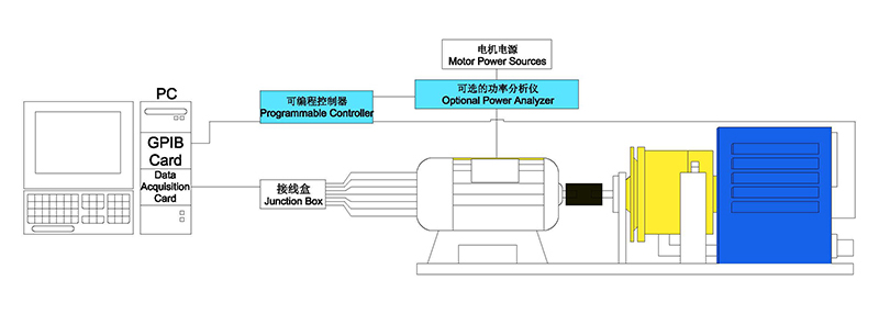 注:一个基本的闭环系统包括一台测功机,可编程测功机控制器及马达测试软件。综合的系统也包括电力分析仪,温度测试软件/硬件。